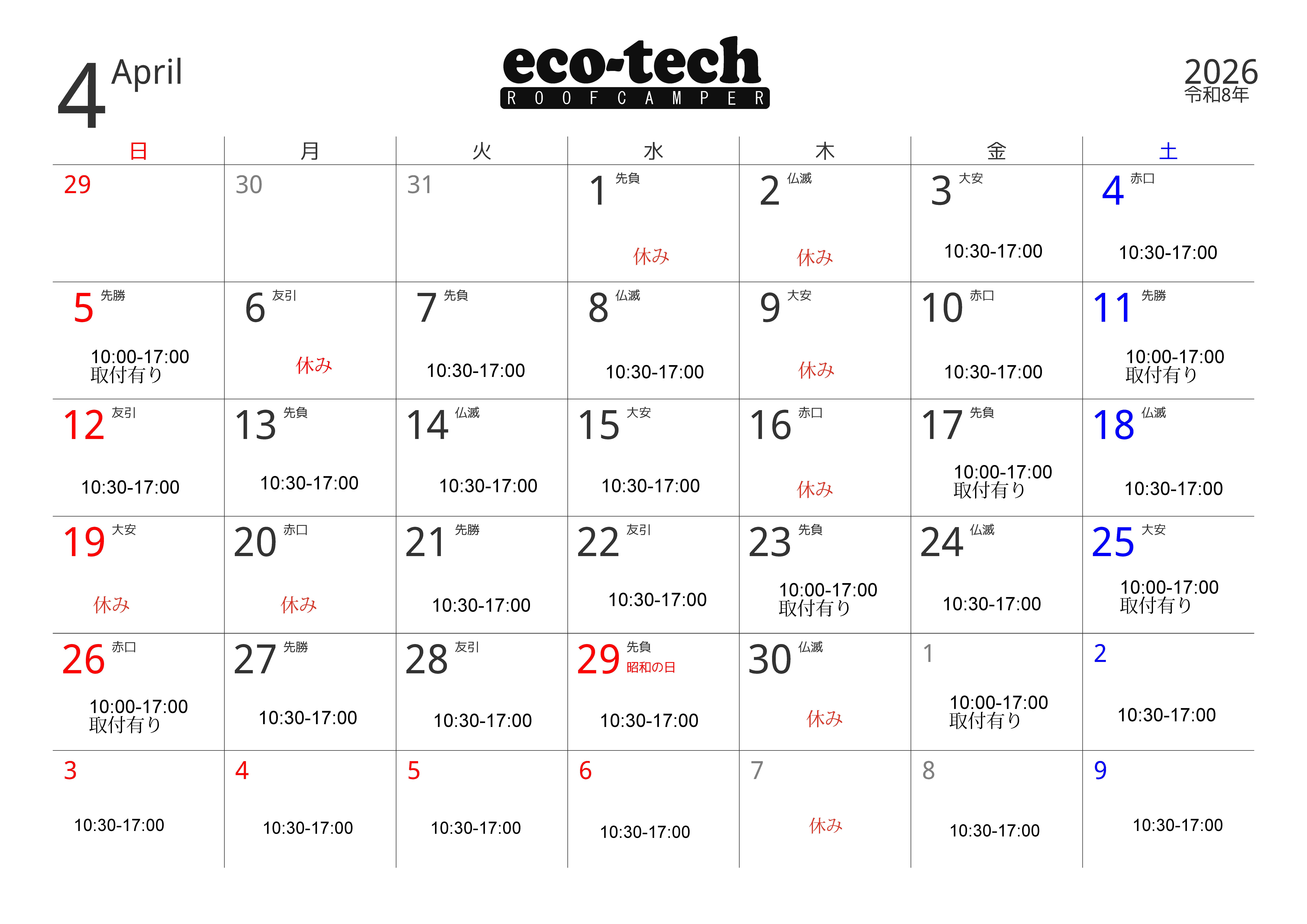 各月の臨時休業のお知らせ、ご来店の際はご確認下さい